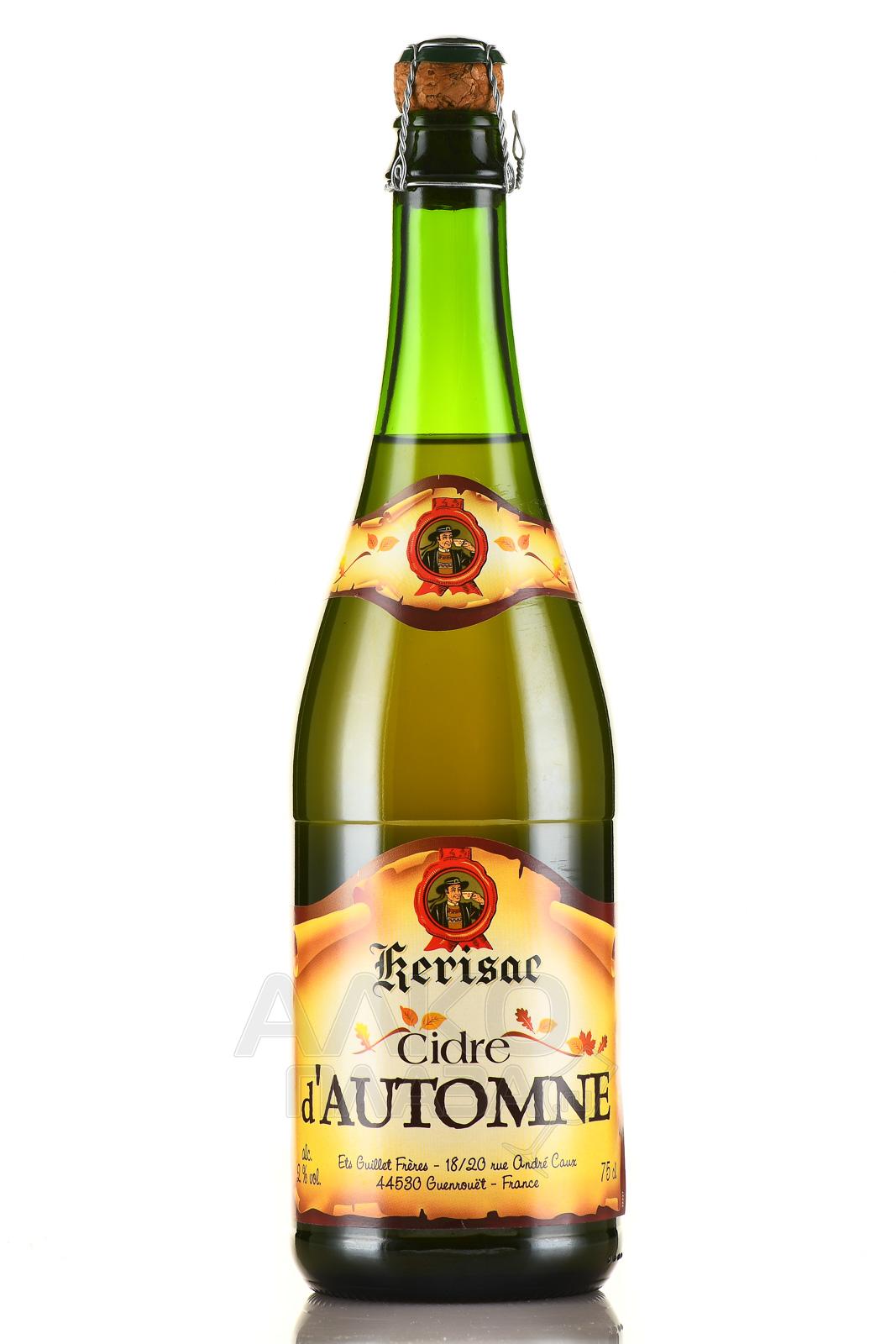 Сидр игристый Kerisac d`Automne 0.75 л содержит 63-83 г сахара на литр и относится к категории сладких. Он изготавливается во французской исторической области Бретань. В роли сырья выступают ранние сорта яблок, которые выращиваются специально. Выпуск напитка приурочен к ежегодному Осеннему фестивалю сидра. Из плодов отжимают сок, который дважды ферментируют в стальных герметичных чанах. Игристый напиток разливают после легкой фильтрации, поэтому в бутылках допустимо появление небольшого осадка — это показатель натуральности.