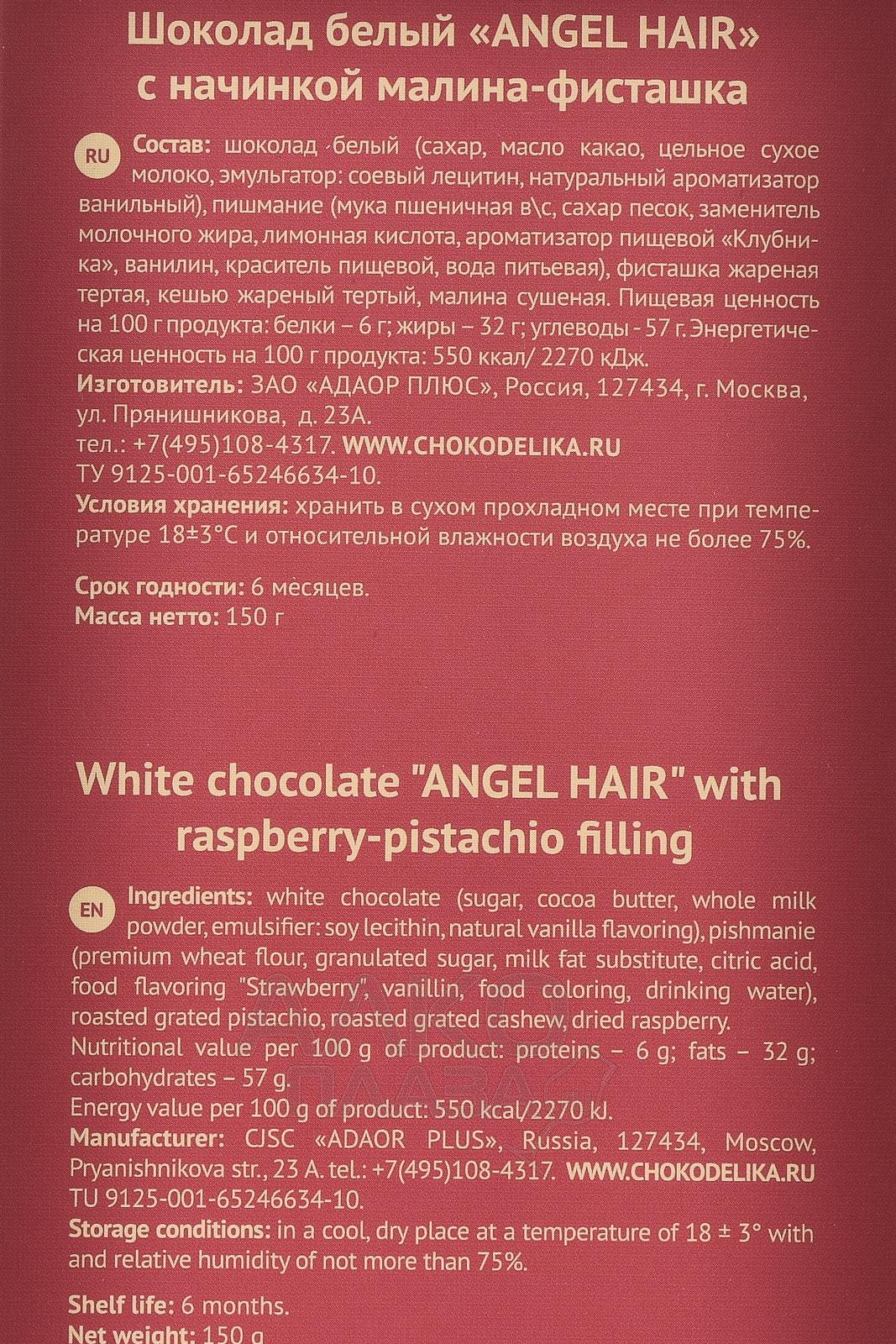 Шоколад Чокоделика белый с начинкой Малина Фисташка 150 г