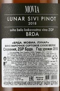 Movia Lunar Brda - вино Брда Мовиа Лунар 2018 год 1 л белое сухое