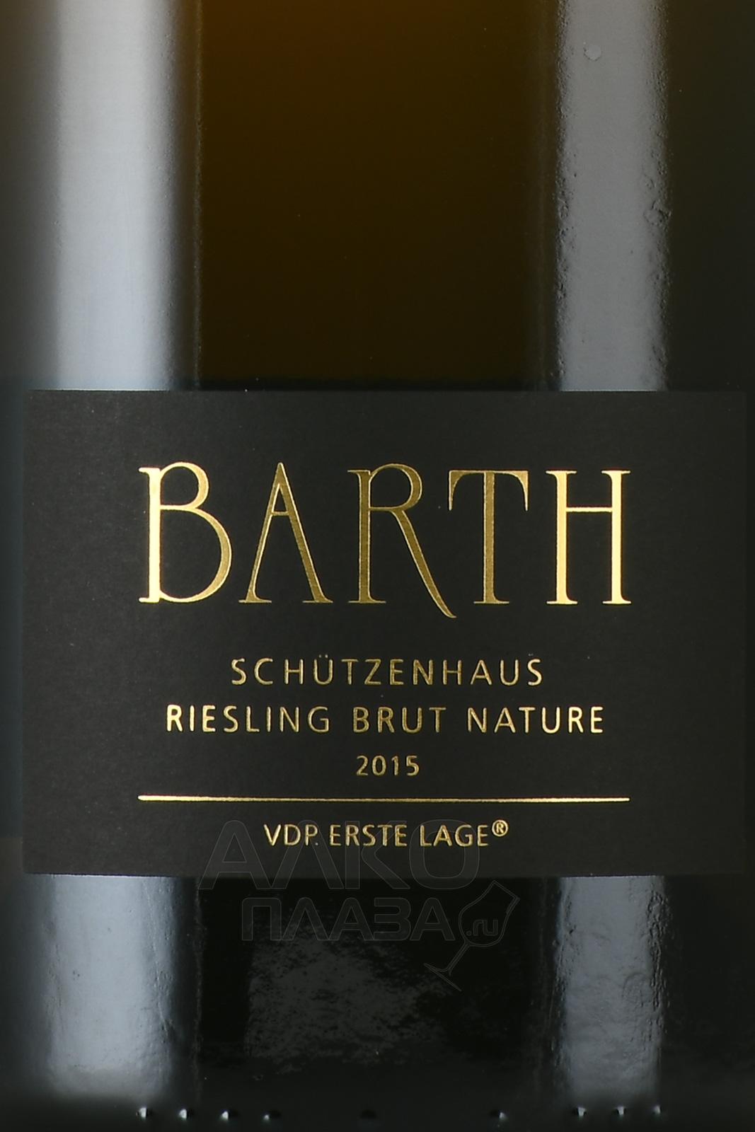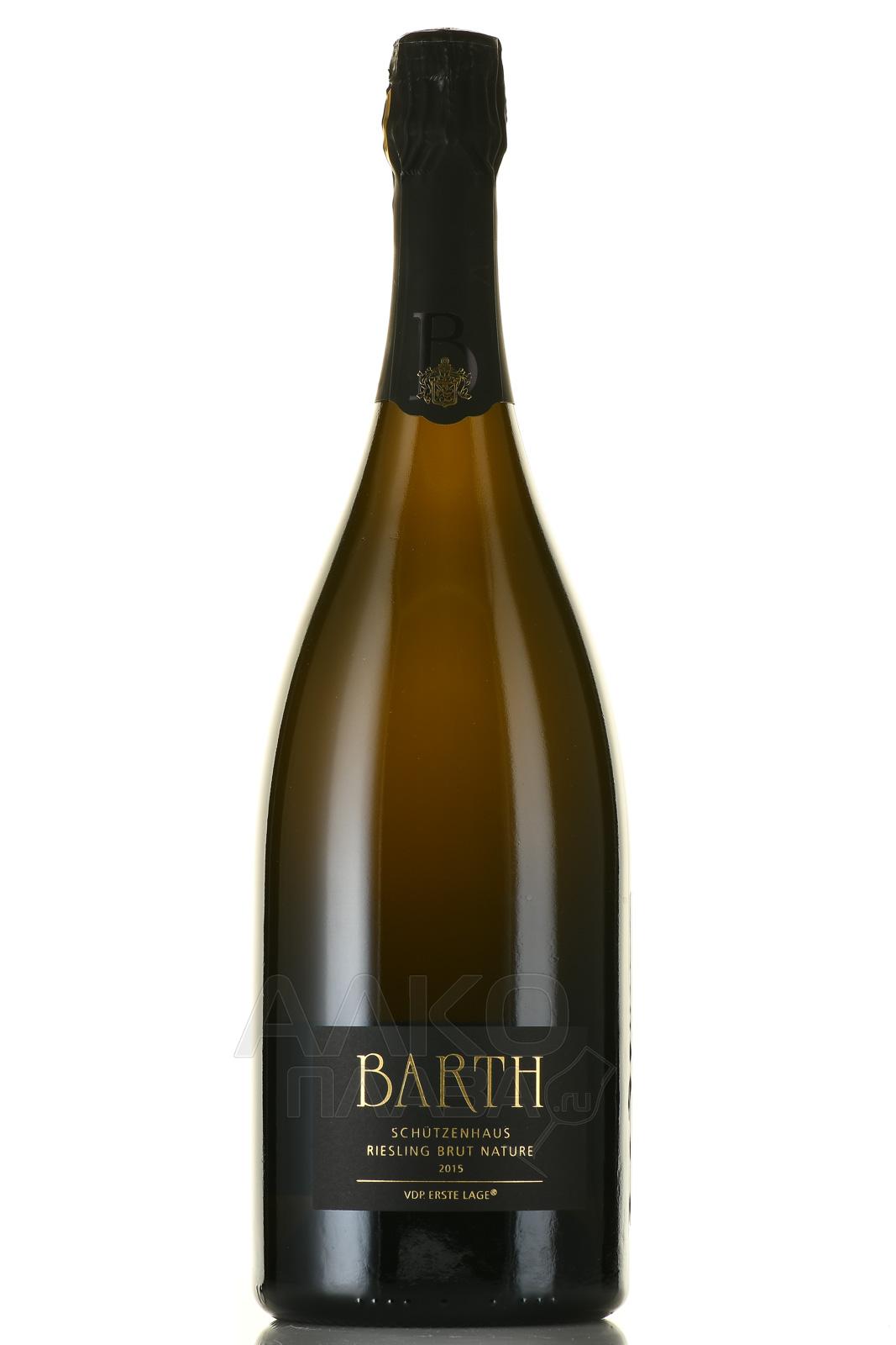 Игристое белое вино Barth Schutzenhaus Riesling Brut Nature 3 л — роскошный немецкий брют из региона Рейнгау в 3-литровом формате объема, созданный из сорта Рислинг, собранного в определенный год. Урожай выращивается на винограднике Шютценхаус, который имеет классификацию по аналогии с французским Премьер Крю и собирается ручным способом на пике спелости. Ферментируется брют при строгом термоконтроле, а выдерживается в дубовых бочках. Повторная ферментация проходит в бутылках, выдержка на дрожжевом осадке — в течение 5 лет. Потенциал развития — 18 лет.