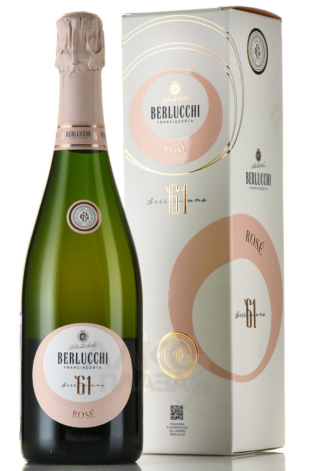 Розовое игристое вино Berlucchi 61 Franciacorta Rose 0.75 л в п/у — премиальный итальянский брют розе в подарочной упаковке, созданный из купажа Пино Неро и Шардоне, выращенных в Ломбардии и собранных в один год с лучших виноградников Франчакорты. Виноград Пино Неро мацерируют несколько часов вместе с кожицей — это придает игристому вину розовый цвет. Кюве проходит повторное брожение после розлива, далее выдерживается в течение двух лет на осадке, затем еще около двух месяцев после дегоржажа. Цифра «61» указывает на год, когда компания выпустила первые 3 т бутылок игристого вина, которые покорили жителей Италии.