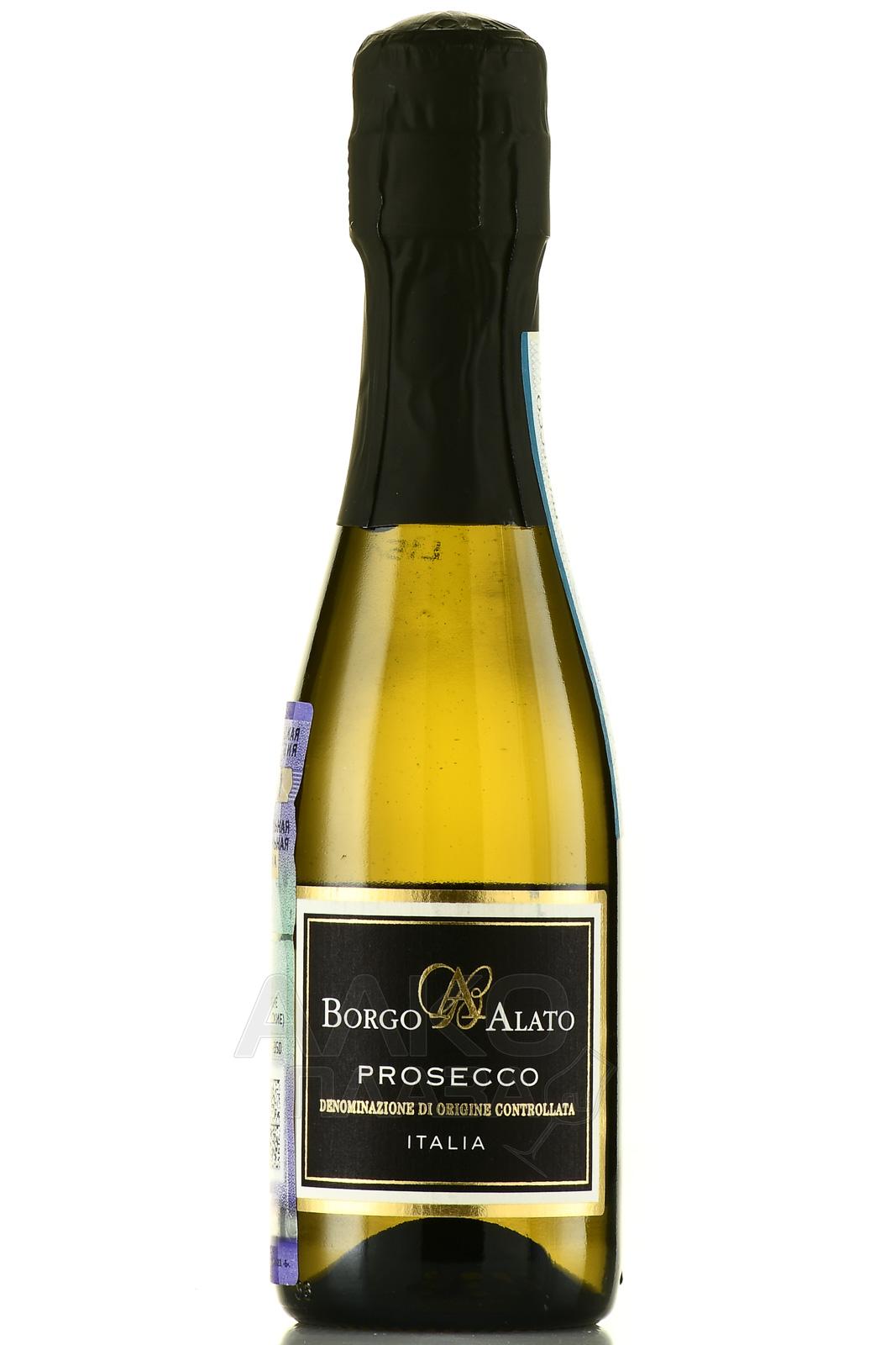 Белое сухое игристое вино Borgo Alato Prosecco DOC 0,2 л — традиционный напиток итальянского региона Венето, который относится к популярным видам шипучего алкоголя. В составе преобладает сорт Глера, дополняемый небольшим количеством ягод Шардоне. Их собрали в течение одинакового года и обработали по технологии Шарма-Мартинотти, то есть ферментировали только в автоклавах. Игристое вино в бутылке небольшого 200-миллилитрового формата — хороший вариант для покупки в ознакомительных целях.