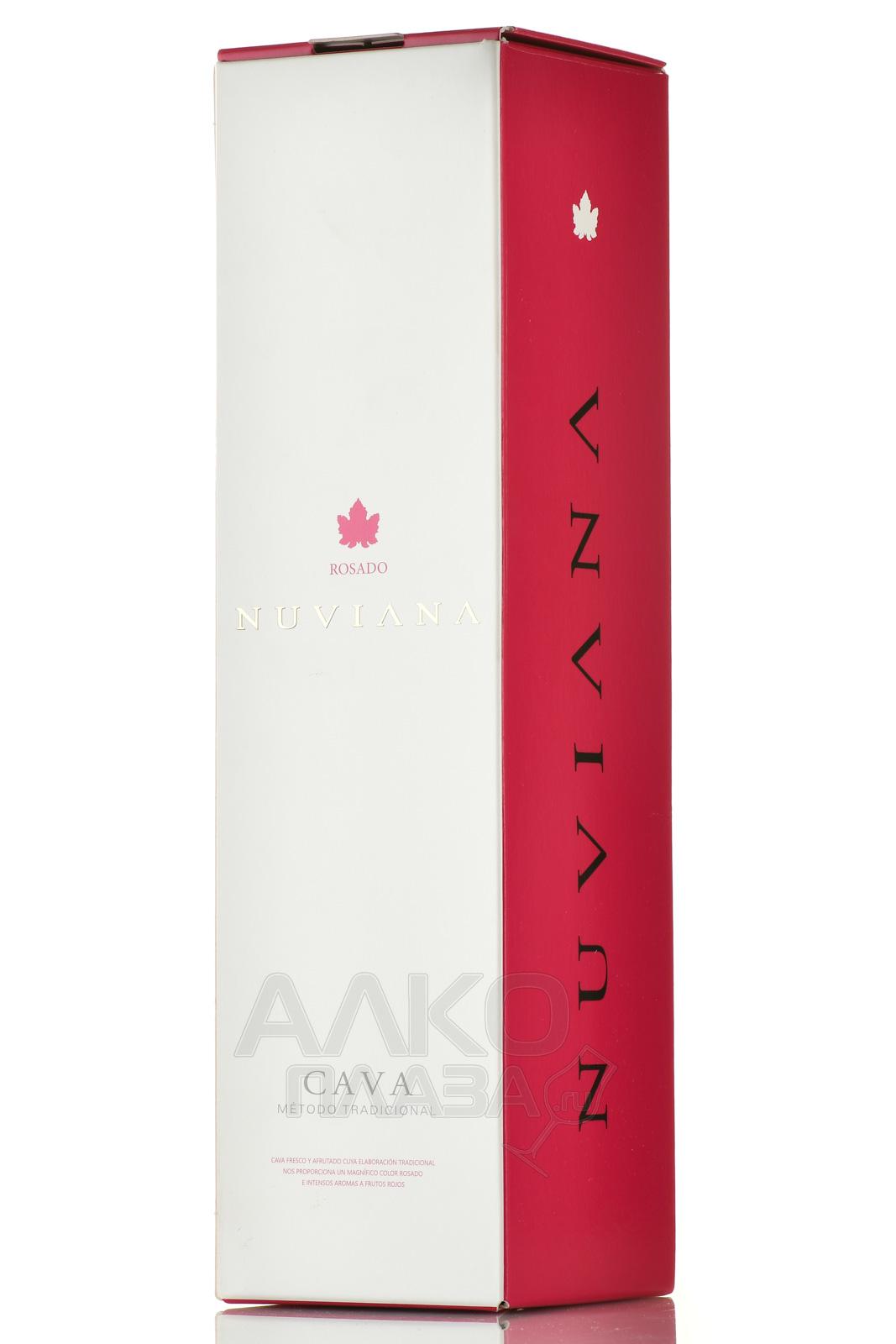 Розовое сухое игристое вино Кава Нувиана Росадо 0,75 л — популярный испанский брют, созданный в области Каталония на основе трех красных виноградных сортов этого региона. Ягоды аккуратно отделили от гребней и подвергли измельчению. Сусло мацерировалось вместе с кожицами непродолжительное время, затем его подвергли терморегулируемому сбраживанию при 15-17 °C в металлических чанах. Вторичное окисление осуществилось в бутылках. На завершающем этапе игристое вино проходило выдержку на осадке сроком 9 месяцев.