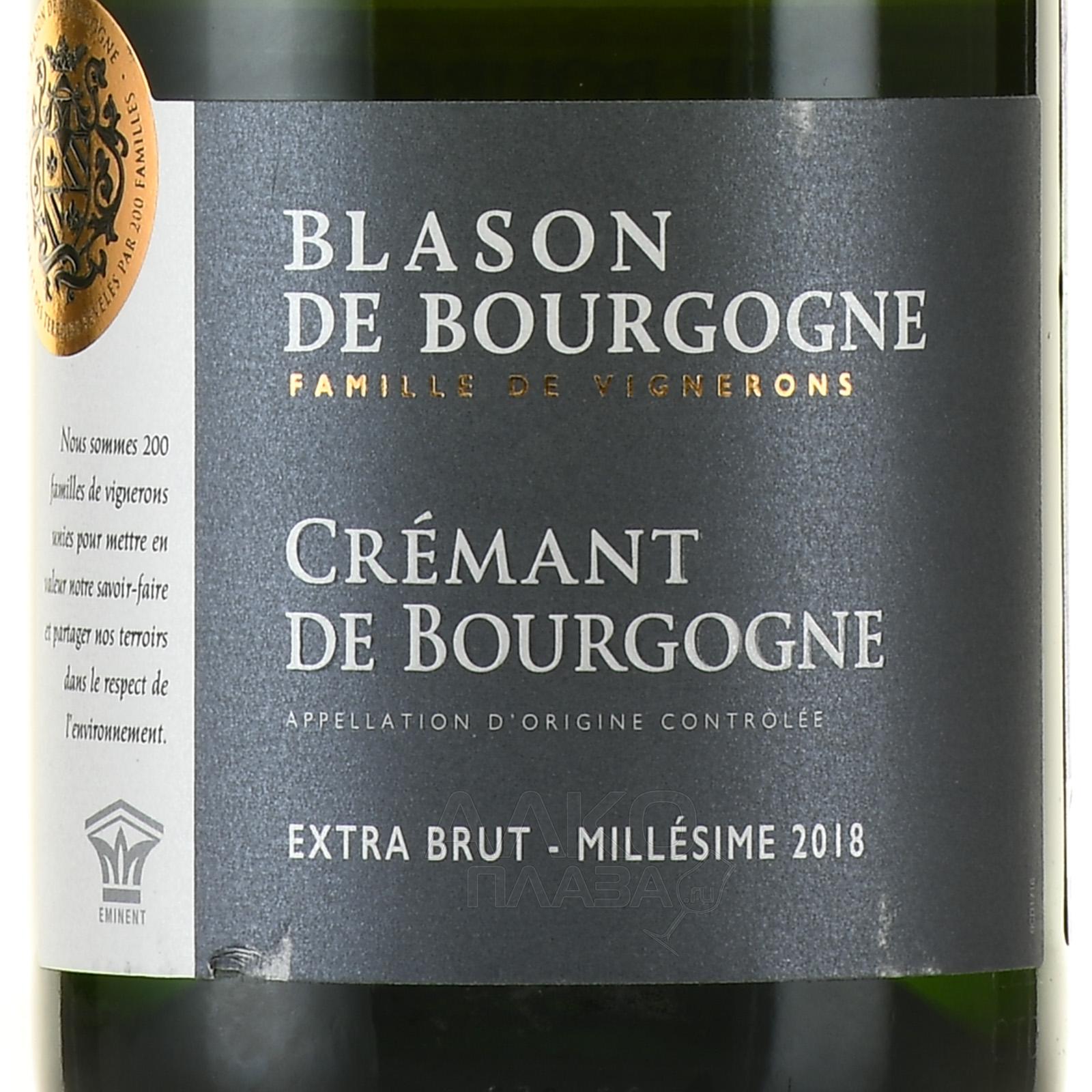 Вино игристое белое Cremant de Bougogne Blason de Bourgogne 2018 г. 0,75 л представляет собой купаж из нескольких сортов французского винограда одного года сбора. Урожаи, созревшие в щедром терруаре Бургундии, отправляют на винодельню, где сортируют и прессуют. Полученный сок сбраживают при контролируемой низкой температуре в стальных резервуарах. Повторное брожение проходит в бутылках – здесь спиртное насыщается пузырьками углекислого газа. Как минимум девять месяцев напиток должен провести на осадке – только после этого его разрешается бутилировать согласно правилам изготовления креманов.