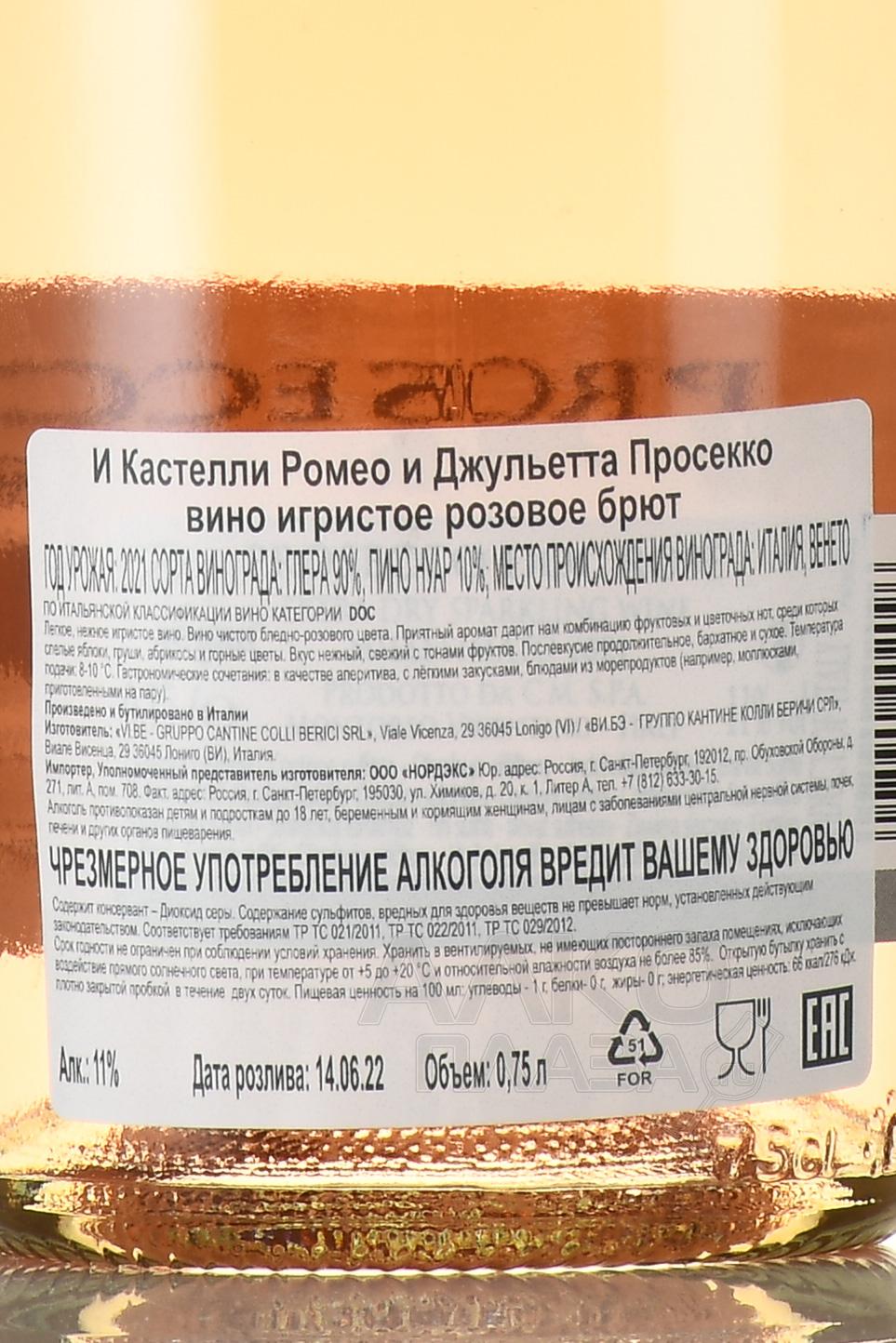 I Castelli Romeo & Giulietta Prosecco - вино игристое И Кастелли Ромео и Джульетта Просекко 0.75 л розовое брют