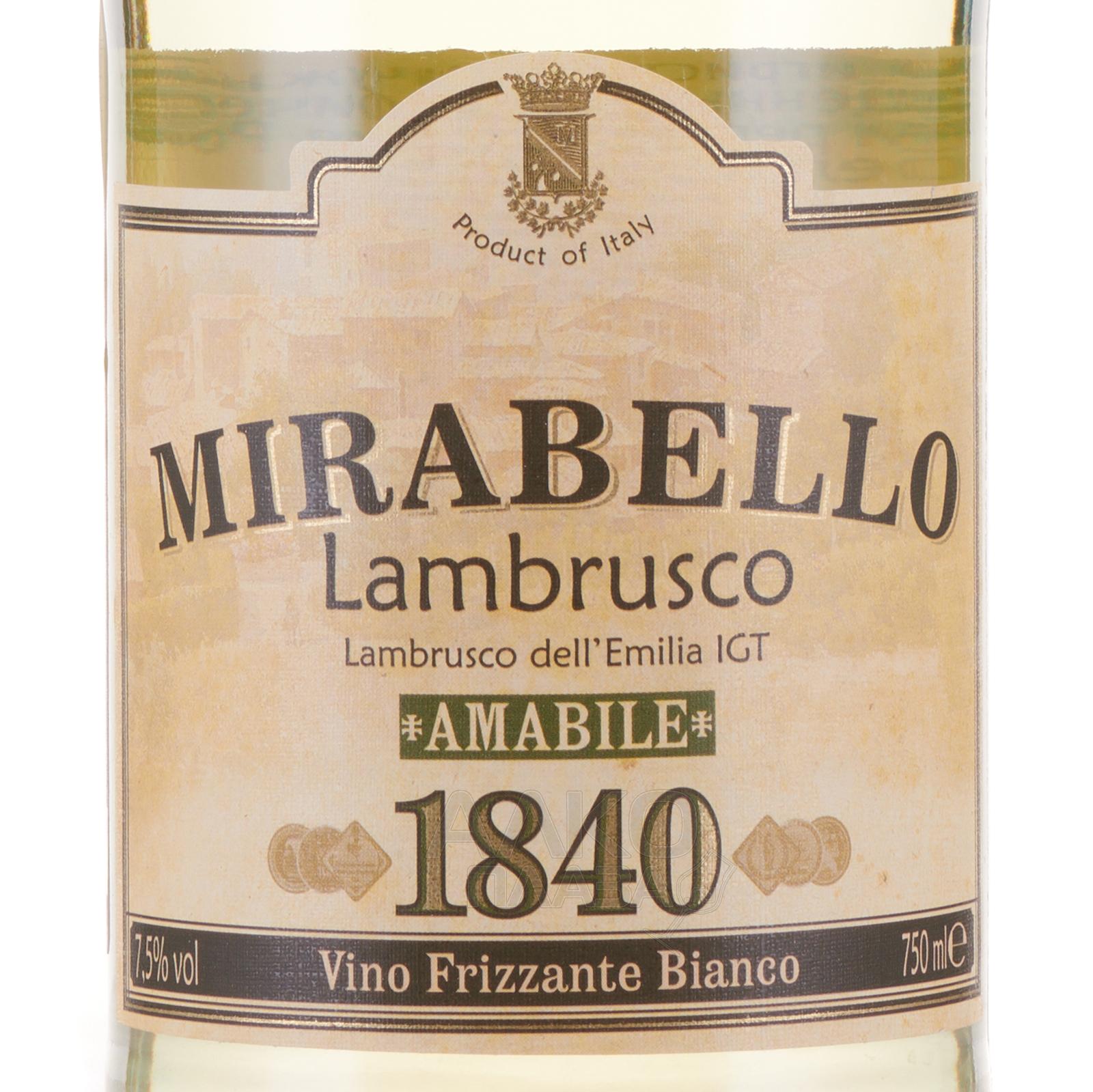 Lambrusco Mirabello Bianco - вино игристое Ламбруско Мирабелло Бьянко 0.75 л белое полусладкое