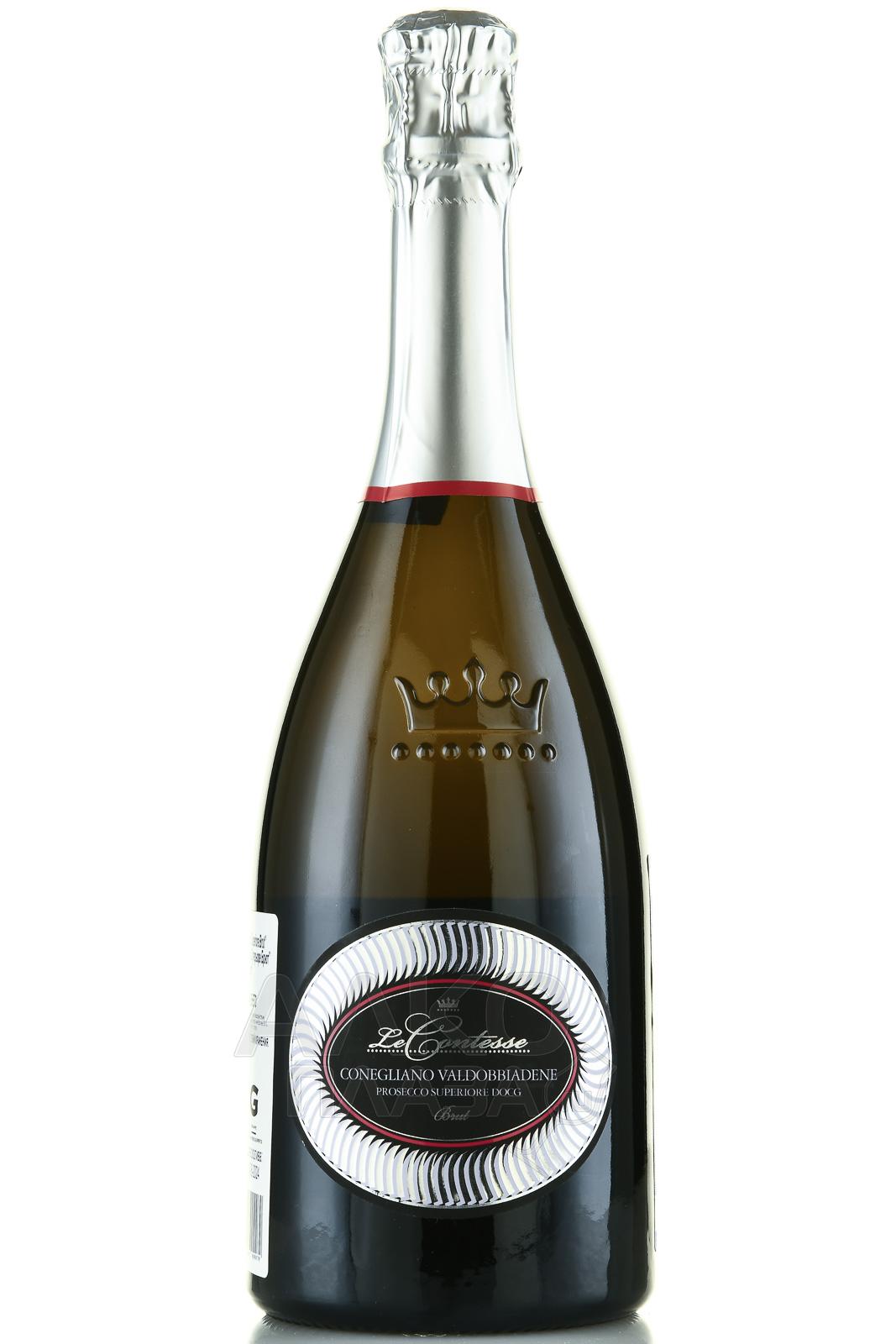 Игристое белое вино брют Le Contesse Conegliano Valdobbiadene Prosecco Superiore Brut 0,75 л – моносортовой образец категории «спуманте» из культового итальянского региона Венето. Напиток происходит с крутых холмов Конельяно, где лозы растут на глинистых известняках на высоте 200 метров над уровнем моря. Из-за особенностей ландшафта плоды здесь собирают исключительно вручную. Отсортированное сырье мягко прессовали, а отжатый сок оставили отстаиваться на некоторое время. Винификация проходила в режиме термоконтроля по методу Шарма-Мартенотти – с повторным брожением в больших герметичных автоклавах из нержавеющей стали. Все производственные процессы проходили при низкой температуре, а после розлива вино еще несколько недель отдыхало в специально отведенном для этого помещении.