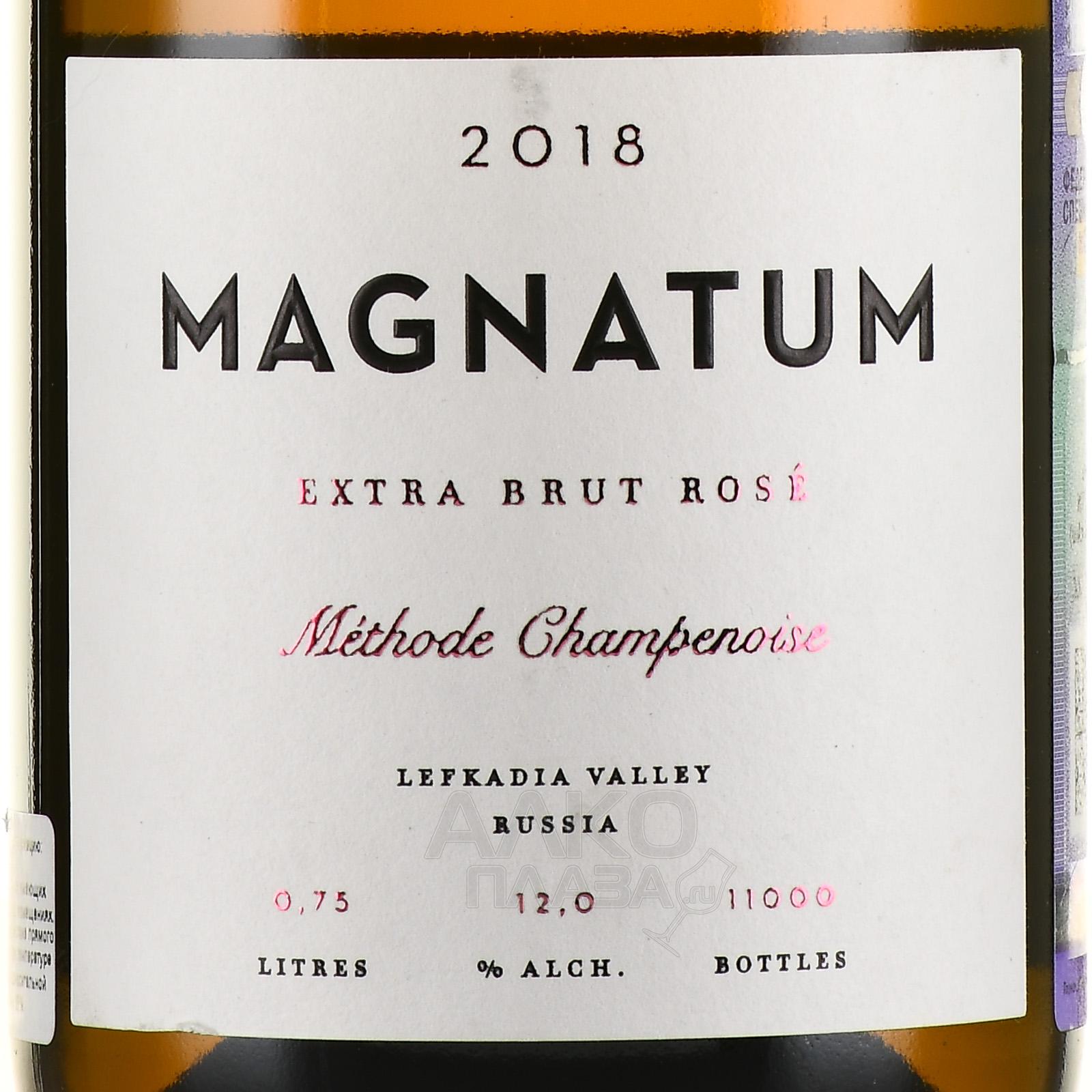 Игристое розовое вино Magnatum 0,75 л — изысканный брют с содержанием сахара 4 г/л, который создан из смеси сортов Шардоне и Пино Нуар. Виноград выращивается на Кубани, в Крымском районе, на склоне Гипсовой горы. Неподалеку находится плантация деликатесных белых трюфелей tuber magnatum, благодаря которым было выбрано название для бренда. Брожение протекает в стали. Напиток выдерживается на осадке 18 месяцев.