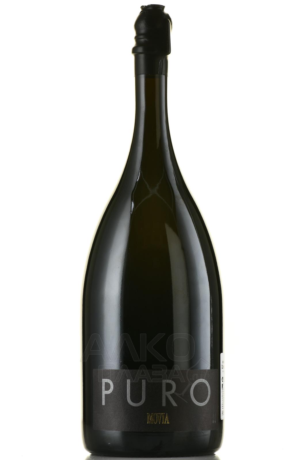Белое сухое игристое вино Movia Puro Brda 2011 г. 1,5 л отправлено на продажу в темно-зеленых стеклянных бутылках повышенного объема. Качественный алкогольный напиток производства Словении обладает крепость 12,5 процента и относится к формату Extra Brut. Его состав сформирован спелым виноградом ограниченного урожайного сезона (автохтоном и международным сортом), собранным вручную на биодинамических участках региона Горишка Брда. Измельченные ягоды прошли холодную мацерацию и прессование с последующим отделением сока. Ферментация протекала в стальных резервуарах и дубовых бочонках. Выдержка в древесной таре длилась четыре года, по ее завершении игристое вино перелили в бутылки для вторичного сбраживания. Считается, что этот брют способен очень долго храниться — порядка 15 лет.