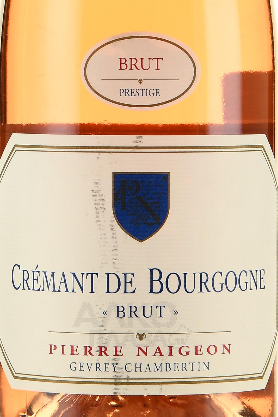 Pierre Naigeon Rose Brut Cremant de Bourgogne 0,75 л — розовое игристое вино, которое производится классическим методом из винограда, растущего в коммуне Жевре-Шамбертен. Участки, принадлежащие Пьерру Нежону, возделываются органическими методами. Сбор урожая ручной с дополнительным отбором ягод на сортировочном столе. Выдержка на осадке длится 9 месяцев.