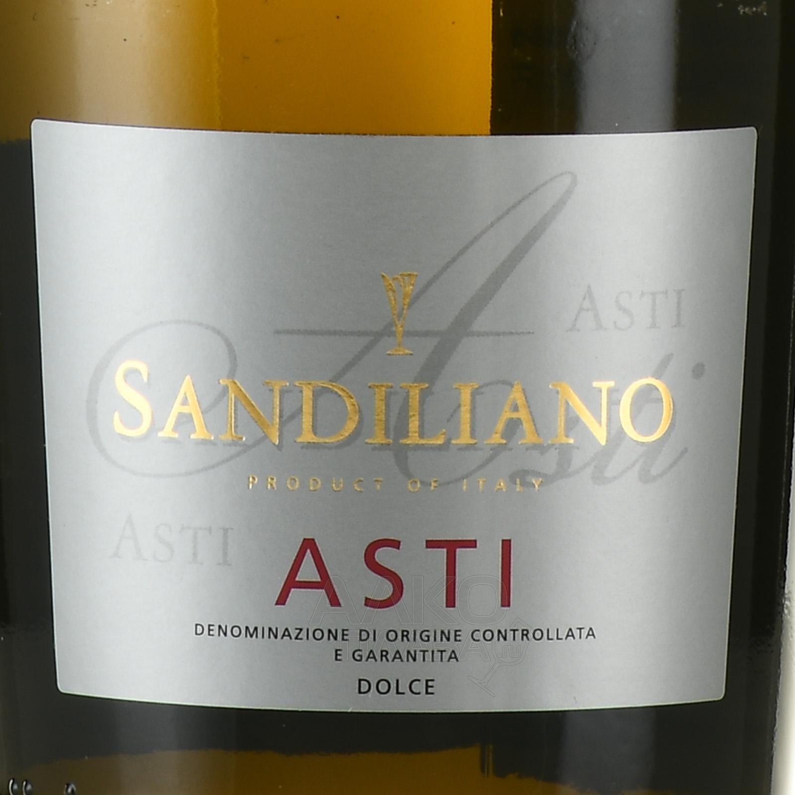 Игристое белое сладкое вино Sandiliano Asti DOCG 0,75 л создается из сорта Мускат, который получают с виноградников престижной микрозоны Асти DOCG. Его собирают на пике спелости, подвергают деликатному прессованию, сок отстаивают, отделяют от мезги и сбраживают со специальными штаммами дрожжей в течение 48 часов в герметичных автоклавах. Для сохранения природного сахара процесс ферментации останавливают путем сильного понижения температуры. Затем производится вторичное брожение по методу Шарма. Игристое вино бутилируется после микрофильтрации.