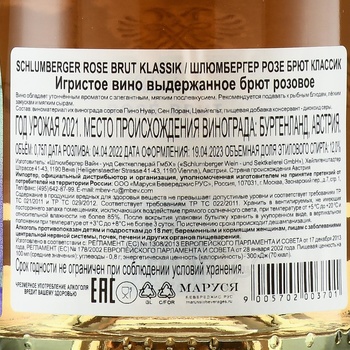 Розовое сухое игристое вино Schlumberger Rose Brut Klassik 0,75 л в подарочной светлой коробке, которая содержит традиционную бутылку из прозрачного стекла, родом из Австрии, области Бургенланд, где собрали спелый виноград трех красных сортов и провели его классическую обработку. Ферментация спиртного проводилась по методике традиционной шампанизации, затем сусло вместе с тиражным ликером и дрожжами подверглась пятнадцатимесячному вызреванию в погребах австрийского дома.