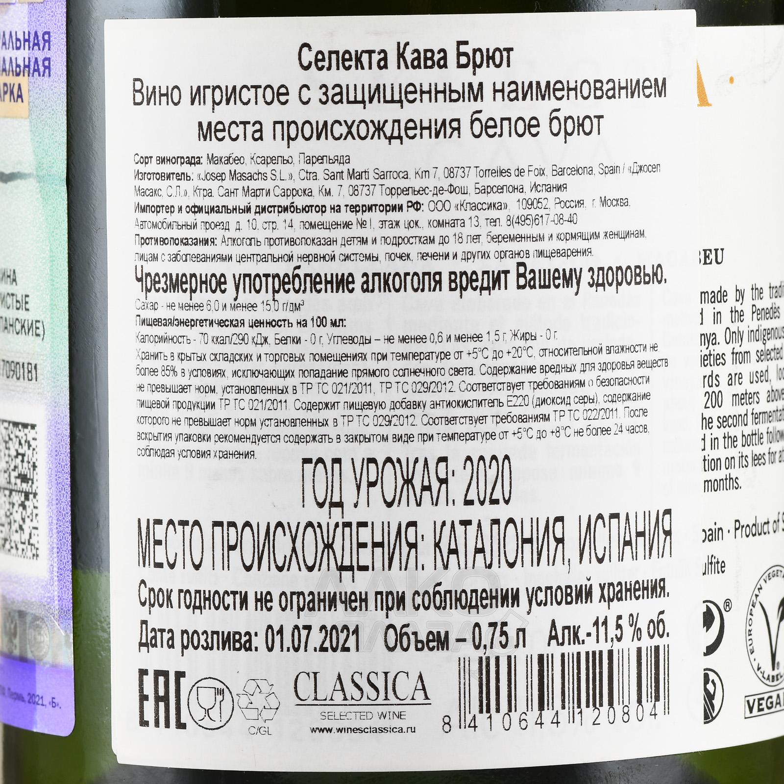 Selectio Cava Brut - вино игристое Селекта Кава Брют 0.75 л белое брют