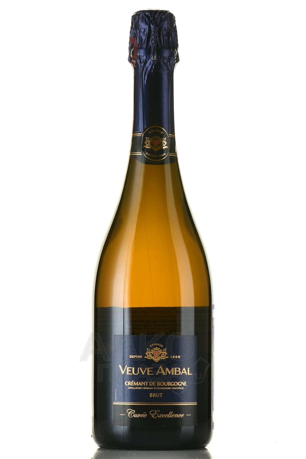 Белое игристое вино Veuve Ambal Cuvee Excellence Brut Cremant de Bourgogne 0.75 л — бургундский купажированный брют, созданный из сортов Шардоне и Пино Нуар, выращенных в Креман де Бургонь и собранных ручным способом в определенный урожайный год. По окончании винификации игристый брют выдерживается не менее двух-трех лет в подвалах компании Veuve Ambal. В 1975 году Cremant de Bourgogne от компании Вев Амбаль получает категорию АОС.