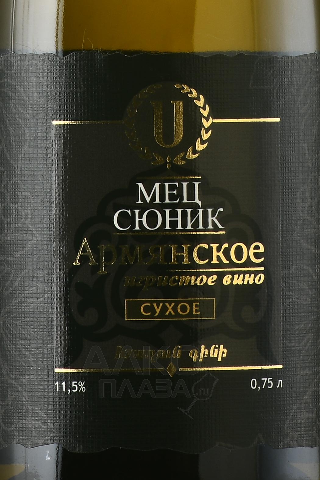 Вино игристое белое сухое Армянское Мец Сюник 0,75 л создано на основе четырех сортов винограда, один из которых выращивается только в регионе Тавуш – местности на севере Армении, где собрано сырье. Здесь, на богатых известняком и мергелем холмах и предгорьях, в мягком и сухом климате, лучше всего себя чувствуют белые лозы. Виноград собрали в течение одного сезона. На заводе его отсортировали, очистили от гребней и прессовали для получения сусла. Брожение проходило дважды, второй раз – с добавление тиражного ликера – смеси вина, дрожжей и сахара. После напиток выдерживался полгода на тонком осадке.