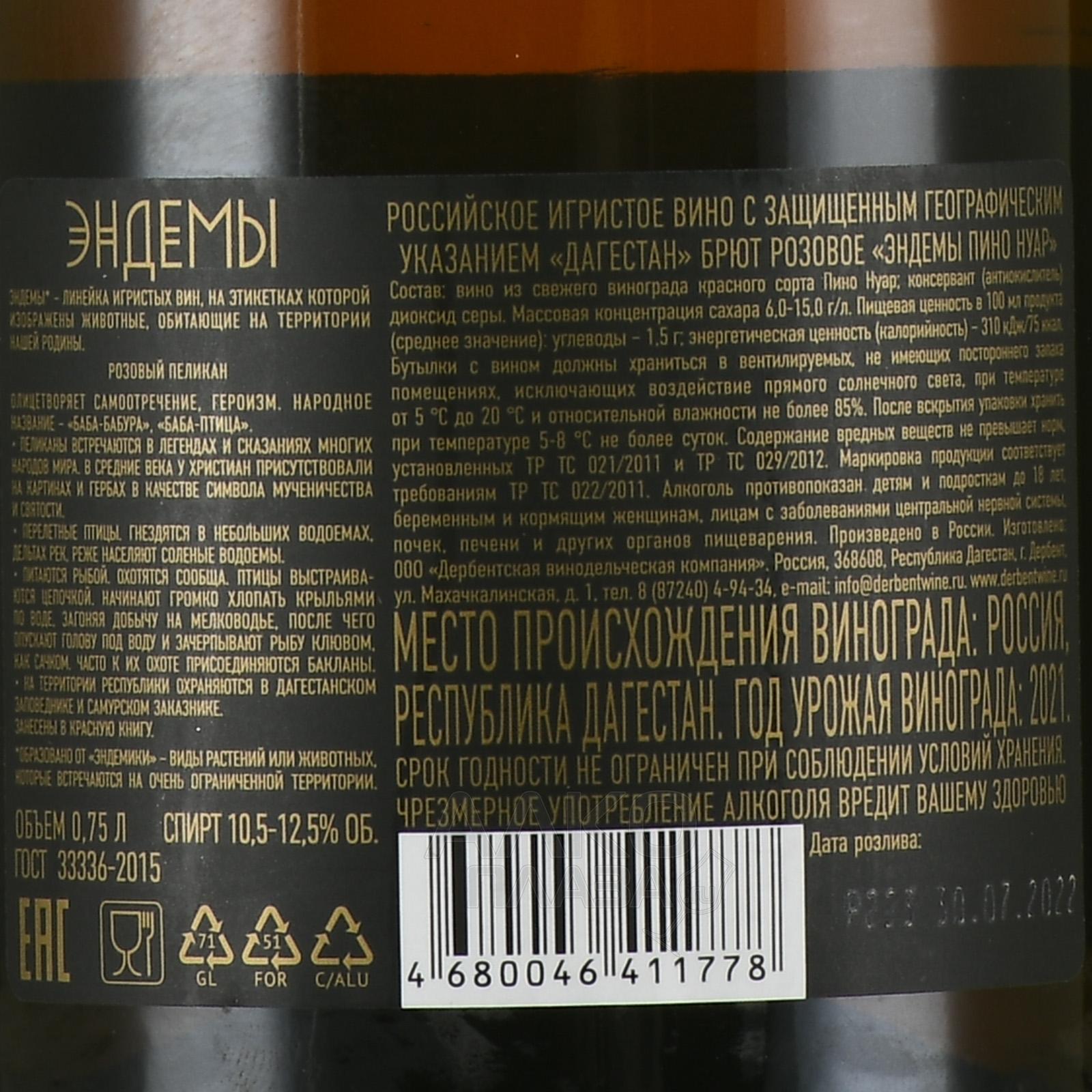 Вино игристое Эндемы Пино Нуар 0.75 л розовое брют