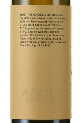 TemeT Tri Morave - вино Темет Три Мораве 0.75 л белое сухое